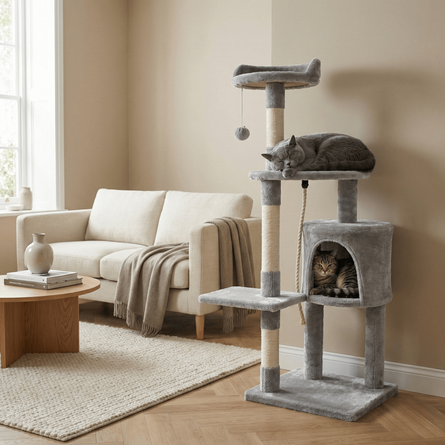 Encourages natural climbing, jumping and stretching, helping cats stay fit, agile and healthy, particularly indoor cats that lack daily outdoor activity.